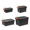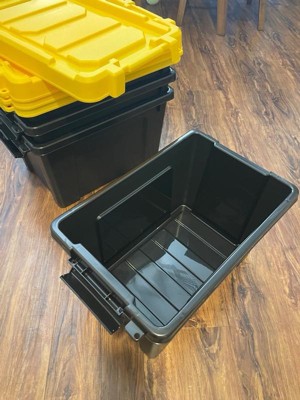 Rugged. Secure. The 13 Qt. WeatherPro Store-It-All Storage Bin in Black is designed to protect your most valuable items in the toughest outdoor conditions. The Weathertight Pro seal combined with securely latching buckles keeps moisture, bugs, and dust out of your possessions. The space-effective and stackable 3-gallon design makes this the perfect storage tote for camping gear, hunting equipment, first aid kit supplies, tools, job-site materials, and more! With the ability to add a padlock or zip tie to the lid, you can rest easy knowing your belongings are safe from intruders. For added safe keeping, the grooved lid allows you to secure each bin with bungee cords or straps. With the 13 Qt. WeatherPro Store-It-All Storage Bin, you can have peace of mind storing your items in your garage or in the back of your truck on a road trip. This heavy-duty storage container is proudly made in the USA with durable BPA-free plastic and is opaque to keep your items private. Protect your most valuable items in the most rugged conditions with IRIS USA’s Store-it-All product line, available in 13 Qt., 22 Qt., 47 Qt., 78 QT., 82 Qt., and 173 QT.