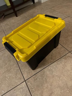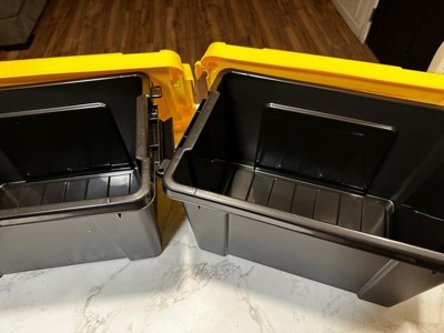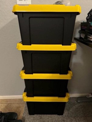 [This review was collected as part of a promotion.] I love these utility bins. They are sturdy, and great quality. The lids latch on, and keep them close really well. They have the ability to be locked, or zipped tied, through a hole in the bin and lid. They are a really versatile size. They stack , and are very stable when stacked. So wonderful for organized storage. I could not be happier with them.
