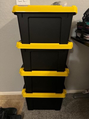 [This review was collected as part of a promotion.] These heavy duty plastic storage boxes are really handy for putting away items that you might not be using for while such as seasonal decorations. The plastic is pretty high-quality and I really like that you can stack the boxes on top of each other for more efficient space saving.