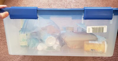 [This review was collected as part of a promotion.] The IRIS 30 qt WeatherPro Plastic Storage Bin has a sturdy and durable plastic body which is ideal for storing heavyweight items. Unlike many plastic containers that are made to be quite fragile to store lightweight items like linens and smaller personal household items, these storage bins are built to be more durable. I like how the four latches are strong and keep the container lid on very tight. It takes a little strength to unlatch and latch and has a satisfying snapping sound. They also don't look easy to break. The lids have a flat top with the proper ridge that is ideal for stacking more bins on top. The plastic material is hardy and durable and doesn't bend as easily as the typical plastic bin and the body is also clear so you can see inside to its contents. It has a bright blue-tinted clear lid. I also appreciate how the shape of these bins are, for the most part, rectangular which gives it more storage space and has a flat bottomed interior. I don't like plastic bins that are ridged on the inside and make storing items a pain. Over all, these WeatherPro storage bins are high quality bins that are convenient, made to withstand wear and tear and can be used to store a wide range of items in multipurpose settings. I think the one complaint I have is that they're not completely rectangular in shape so there are some limits to storage maximization. I would love these bins in varying shapes and sizes to organize and streamline my home storage.