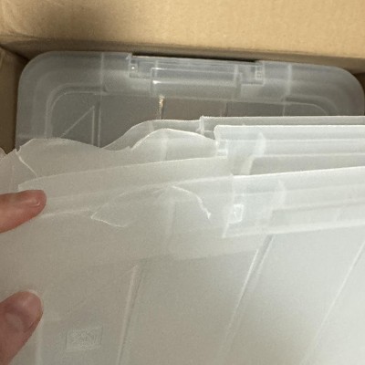 3 of my 4 bins came damaged. Chunks of the lids had been snapped off and one of the handles is broken and can't be reattached because one side of it had broken off completely. These are the perfect size but definitely aren't the best quality.
