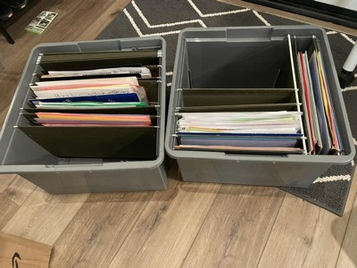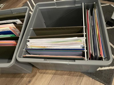 The IRIS Letter and Legal Size Plastic File Organizer make storing your important documents a breeze. Organize your home or office with these durable file storage bins. Featuring a optional wire divider which snaps into place, the file folder organizer can be divided allowing for more versatile file storage. The large box file storage accommodates hanging file folders for letter and legal sized documents and are stackable to maximize storage space. Set of 3.