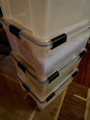 [This review was collected as part of a promotion.] I got the 60 Qt. IRIS USA storage bins, and they’ve seriously made organizing so much easier. They’re super spacious, and I've used them to store everything from winter clothes and new outfits to towels and blankets. The clear design is really handy because I can quickly see what’s inside without having to unstack the bins. The latches feel strong and durable, and the airtight seal does a great job of keeping everything clean and protected from dust or bugs.