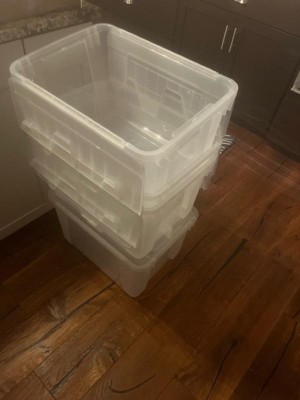 [This review was collected as part of a promotion.] I am in the process of creating a walk in closet out of a spare bedroom and these bins have been perfect for me to pack up stuff that I need to move down to the basement for storage. They are a great size and love that the lid is attached so I don’t misplace them!