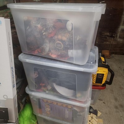 [This review was collected as part of a promotion.] These storage containers are large and durable. I have already used them like laundry baskets to separate my clothes. I plan on using them next when I take down my holiday decorations for storage! The clear bins will be perfect to see what I need to grab next Winter. The lids are nice because they fold open, so you don’t have to take them off to get your stuff. I highly recommend these!