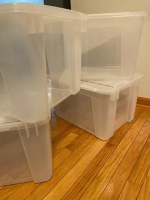 IRIS 4pk 50qt Plastic Storage Totes with Wing Lid: Clear, Stackable, Under Bed Storage, Lidded