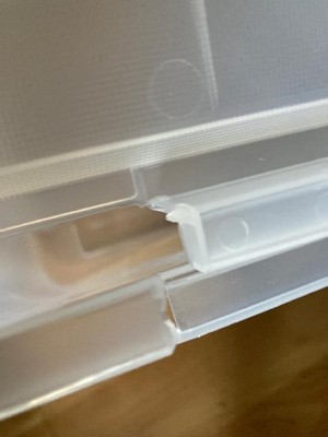 [This review was collected as part of a promotion.] Been using these bins for a while now to store seasonal clothing and decorations, and they’ve been holding up really well. The lid is very interesting. In order to close it, you have to close both sides at the same time in order for the zig zag parts to overlap.