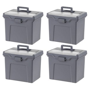 IRIS 4pk Portable Letter Plastic File Box with Organizer Lid Gray