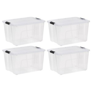 Organize items quickly and easily with IRIS USA’s 60 Qt. Plastic Storage Bins with lids. These are ideal storage containers for organizing closets, dorm rooms, pantries, cabinets, and more! The space-effective and stackable design is great for holding office supplies, craft supplies, cleaning supplies, shoes, and other household goods. These latching storage bins with durable lids lock and protect contents inside. This versatile clear storage bins allow for easy identification of contents and are proudly made in the USA with BPA-free plastic. Easily store and access your household items with IRIS USA’s Plastic Storage Bins, available in 13.5 Qt., 20.5 Qt., 32 Qt., and 60 Qt.