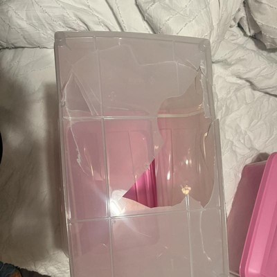 Would have given this 5 stars but the first one I ordered was missing the wheels, the top container and scoop. Target refunded me and allowed me to keep it since the grey one was sold out. I ended up ordering the same set but in pink. When I received the pink set all the parts were there; however the lid was cracked! Not a big deal since I was able to use the grey lid from the first order.