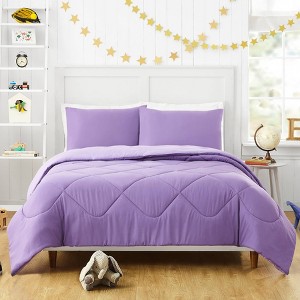 This classic Iris comforter makes the perfect addition to your already cute room. Wrap yourself in it’s soft and lofty warmth. It is cozy yet breathable for year round comfort. The solid Iris face reverses to a softer shade of purple so you can easily switch up your look whenever you choose. This easy care set is made of super soft brushed polyester. The full/queen comforter set is complete with two matching shams. The twin comforter set comes with one matching pillow sham.