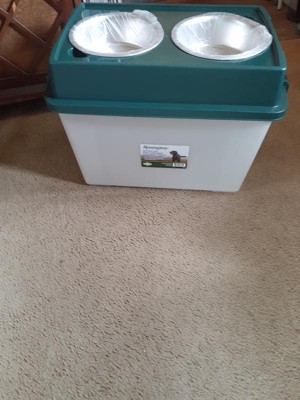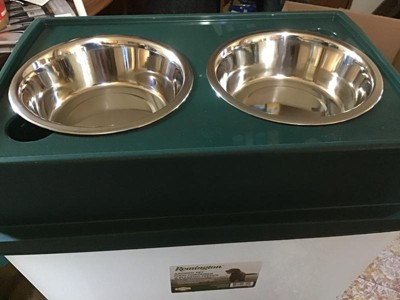 [This review was collected as part of a promotion.] I received my Remington airtight pet food container the other day. It is great, holds a whole big bag of dog food with the food and water bowl on top, up higher for easier reach. It keeps the food airtight and fresh(also mouse proof). It cleans up the dogs feeding area very well. Guidance and I are very happy with her new feeding station.