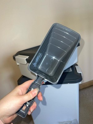 [This review was collected as part of a promotion.] Love the size of the pet food storage bin and the companion treat box. The scoop that was included has markings on it if you want to measure. Easy to clean.