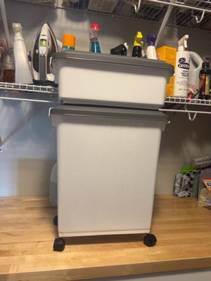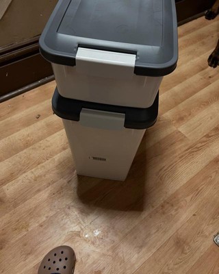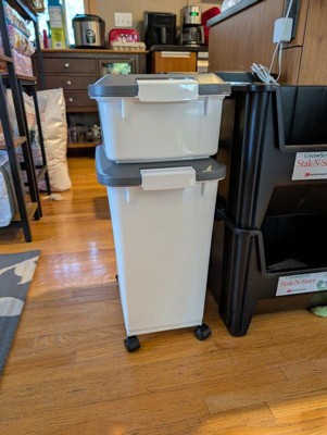 [This review was collected as part of a promotion.] I love that the bins stack. We use the top smaller one for hamster food and the bottom for bedding. The plastic seems thin/flimsy and the latching style isn't our favorite. Not the best container, but decent and does the job. Wheels make it easy to move.