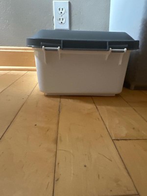 Meet the airtight container designed with your pet in mind. This 12 quart plastic airtight container is perfect for storing dog food, cat food, or any other pet food you wish to store. The sealed storage container features a foam seal and snap lock latches to keep contents fresh. Designed as pet food bins, these BPA free airtight storage bins offer many other uses as well, such as leash and toy storage, pellet storage, grain storage, birdseed storage, cat litter storage, or even as a Charcoal container. This IRIS airtight pet food container is translucent, versatile, functional, and can be used in any area of the house. Made in the USA. capacity varies by the brand and type of food.