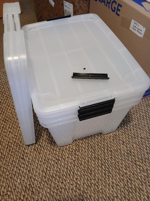 IRIS 6pk 20qt Plastic Storage Bins with Lids Black Yellow Latching Stackable Totes