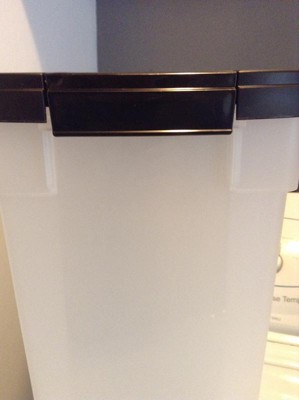 The IRIS Premium Airtight Pet Food Storage Container is the perfect solution to store dry pet food. The airtight sealed storage container locks in freshness and keeps moisture and humidity out. The snap-tight latch confirms that the lid is shut tight, while the wide lid offers easy access for scooping dry pet food. The plastic food container features a translucent body to quickly check content levels. This rolling container can be also used as a charcoal container or wood chip storage. Made in the USA. capacity varies by the brand and type of food.
