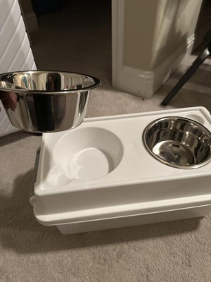 [This review was collected as part of a promotion.] Overall this is super convenient to use! We have two dogs that are in different foods. So having their food under the bowl makes it way easier to feed them their specialized food. We also like it because it is elevated up which is better for our dogs.