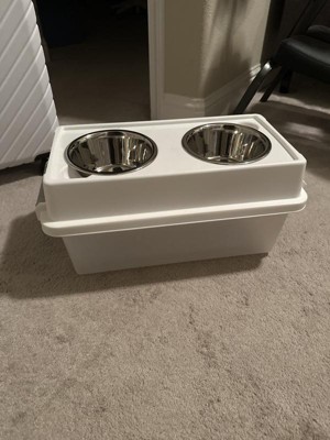 [This review was collected as part of a promotion.] Okay, this was a great choice. We have a large dog and when I saw that this was a raised platform with food storage underneath, I had to try it. I am so glad I did. The sealed food storage under the food bowls is super convenient and the raised effect of the bowls actually helps keep him from making such a big mess. I love this!