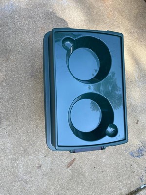Love this all in one, storage and feeder. Have a Golden Retriever and we go camping works great for storage of her 50Lb bag of food and the bowls are elevated. Only negative would be the lid gets lime build up and needs a good scrubbing