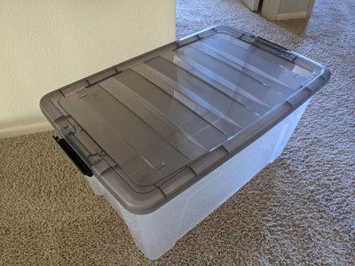 [This review was collected as part of a promotion.] Nice large storage totes. Neutral transparent color and interlocking latches all make it easy to keep it organized. It is light weight, easy to stack with the ridges. It was a little disappointing to see that it wasn’t heavy duty as Iris products are normally durable.