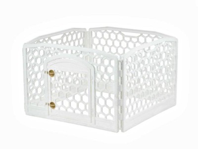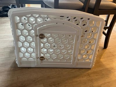 Iris pet playpen add-on panels help build the perfect play area for puppies, extra small to medium sized dogs and other family pets. Use the panels to create or add to an indoor dog Fence, play gate, dog play yards, or dog exercise Pens. The panels for the portable playpen provide plenty of play space for pets. The panels come in sets of two and each one measures 33. 6"W x 24"H, while the distance between bars is 1. 7''. The heavy-duty molded indoor pet pen panels will last for years. Pet panels can be positioned in different shapes and added to New IRIS pet Playpens, ci-604e to best suit your space capacity and pet's needs. The plastic panels securely snap together to keep your pet inside. The Add-On panels also feature a non-skid rubber foot to protect flooring. Made in the USA.