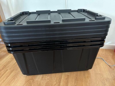 VERSATILE ORGANIZER - 27 Gallon Large Durable Heavy-Duty Storage Plastic Bin Tote Organizing Container with Durable Lid preserve and protect valuables. Maximize the garage or any limited space with Made In USA Heavy-Duty tote to organize. The strong lid and body combo blocks moisture, dust, liquids, and insects. Perfect to store and transport tools, camping gear, blankets, dog/ cat food, rice, flour, and more in or from the garage, basement, workshops, offices, construction sites, or metal shelves. SNAP-TIGHT LID – Keeps contents secure and separates the inside and outside. Perfect for storing clothes, documents, food, hunting gear, camping gear, tool storage, truck storage and other large items. STACK THEM UP – Plastic Heavy-Duty Storage Container Bin Tote has grooves on the lid and body to create a secure stacking experience. IRIS USA lid-body construction ensures stability to stack securely for easy moving, and save space in your house, apartment, condo, and in your car and truck. GREEN CIRCLE CERTIFIED and BPA FREE Plastic – Certified by Green Circle for environmentally friendly plastic airtight storage container. It is also BPA-Free plastic. Great use for organizing the pantry, garage, and basement by storing and protecting rice, flour, canned goods, spices, seasonings, snacks, pasta, pet food, and etc.Dimensions: 30" L x 20" W x 14" H (Inside: 25" L X 15" W X 13" H)