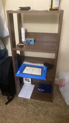 [This review was collected as part of a promotion.] This shelving unit is great in so many ways. I love the deep brown color because you can put it in any room and it looks like it belongs there. The distances between each shelf is perfect. You can place multiple items with a range of size's on each. The one thing that really caught my attention was how easy it was too put together. I really expected to open the box and feel really overwhelmed with pieces. Nope not here!!! Very little put together for a very sturdy and strong outcome. I love it! And it perfect in size where it fits most anywhere.