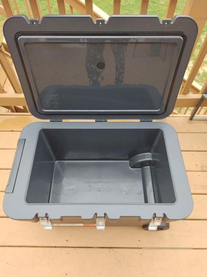 [This review was collected as part of a promotion.] Easy to move around. Solid, heavy duty. Holds a lot. Ice melted really fast, like 24 hours fast. And it's really hard to empty the water. If it's full of water, it's really heavy. There's not a drain on the bottom or side. Otherwise it's nice.