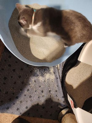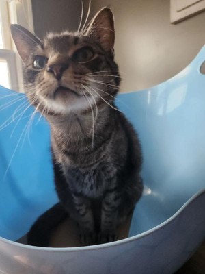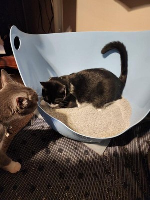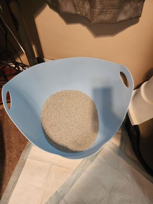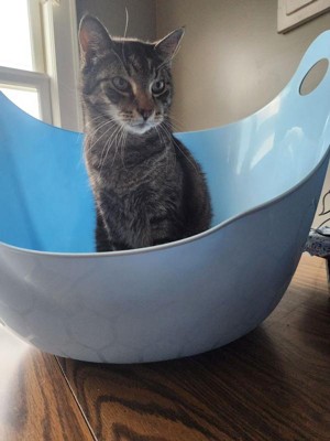 [This review was collected as part of a promotion.] I really liked this litter box. The sides of it are great because the litter doesn’t fly out. It’s also gigantic. I like the blue color as well. Highly recommended.