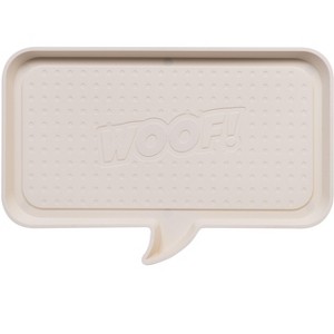 Do you have a messy eater? Feed your cat or dog in style while keeping the chaos contained. The IRIS Pet Feeding Mat has raised edges to keep flying food pieces from going astray. Rubber feet stop the mat from sliding around, so your pet isn't playing "chase the bowl," and the sturdy plastic makes cleaning up any mess a breeze. The mat is molded into a speech bubble that exclaims, “WOOF.” which gives it a fun flair to liven up your décor.