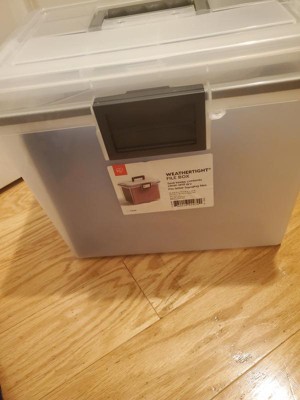 [This review was collected as part of a promotion.] This file storage box is just what I needed for my small business paper work. It is much nicer than the cardboard file boxes and I don't have to worry about my valuable paperwork getting wet or my cats trying to get into the box. I would recommend this storage organizer.