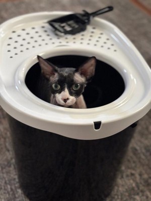 [This review was collected as part of a promotion.] Not only is the IRIS Large Top Entry Cat litter box effective at keeping litter contained, I appreciate its sleek black and white color combination that blends well with my decor. The box is spacious, takes up less floor space, and offers an oval shape top that makes it easy to clean! Our kitties took to it immediately and we cannot get over how much less litter gets tracked out! With this design odor stays trapped inside the box rather than spreading throughout the house. If you have a cat/cats- this is the litterbox you need! Super sturdy and durable- I’m sure this will last us a lifetime! 🐾