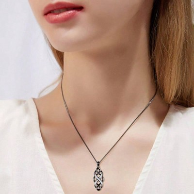 Irish Celtic Knot Created Opal Pendant Necklace 18 Black Necklaces for Women Men Well packed, elegant box.