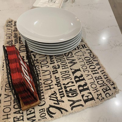 Keep your napkins all in one place with this Black Iron and Mango Wood Wire Napkin Holder from Threshold™. This napkin holder makes a great addition to your kitchen counter or dining area. It features a black iron frame that's equipped with a mango wood base for mixed appeal. The practical piece helps to keep napkins neatly displayed and upright for quick retrieval whenever you need one. Just place it atop your dining table or kitchen island for ease of use.