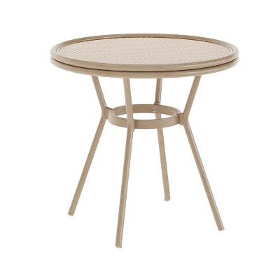 Iron Art Glass High Bar Table - Bar Height Patio Table, Tempered Glass Top, Matte Brown Metal Frame, Double Ring Iron Reinforcement