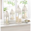 - A little bit of candlelight will go a long way when you light your favorite candle inside this beauty. The iron frame has a vintage white finish that perfectly showcases the intricate cutout details and flourishes.