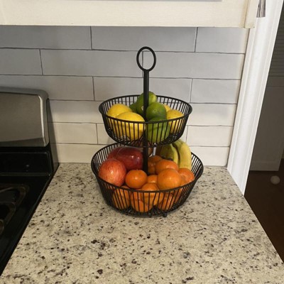 Iron Wire 2-Tier Fruit Basket Black - Threshold™: Traditional Round Fruit Holder Stand, Iron Serving Bowl, 16" Height
