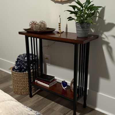 - Compact and Stylish Design: Measuring 30 inches L x 11 inches W x 30 inches H, the Ironcraft Hall Stand Console in Burnished Mission Oak combines traditional mission style with a modern industrial aesthetic Perfect for small spaces like foyers, entryways, or living rooms