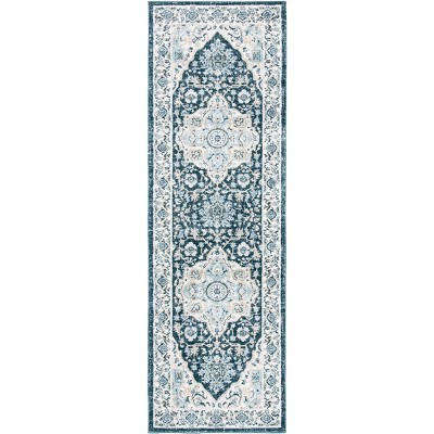 Constructed using advanced Power Loomed technology, this rug boasts a durable polypropylene composition that promises longevity and ease of maintenance. The cream and dark blue color palette is harmoniously balanced, rendering a design that's both bold and inviting.