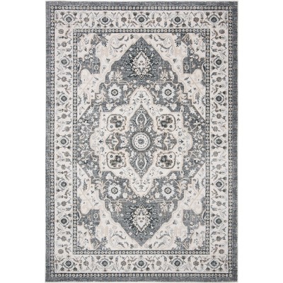 Infused with the classic charm of the transitional style, the rug's pattern showcases an intricate array of florals and ornamental motifs that bring a sense of sophistication and refined luxury to any room. The subtle interplay of light grey and cream hues provides a serene backdrop that enhances the design without overwhelming your space.