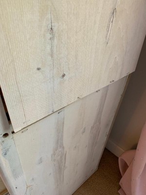 We had to return this back to the store. The shelves were crooked and the painting on the dresser was incomplete. It looked like really bad craftsmanship and we were very disappointed.