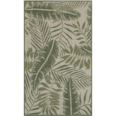 JONATHAN Y Isla Coastal Cottage Palm Frond Border Green/Cream 3 ft. x 5 ft. Indoor/Outdoor Area Rug, Non-Shedding, Easy-Clean