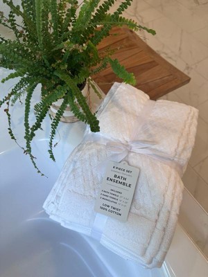 [This review was collected as part of a promotion.] These towels are perfect! They are the perfect texture: absorbent and not too soft! The diamond weave texture also gives them a more luxe look and feel. They are a good size set: bath towel, hand towel and wash cloth are all pretty standard sized. They’ve held up well to washing. I highly recommend these!