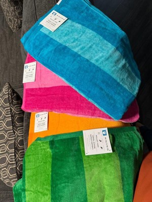 [This review was collected as part of a promotion.] I'm really loving these oversized beach towels. The bright colors are perfect for the season, and the size is great for laying out or bundling up right out of the water. My favorite part about them is fabric...not too thick or thin; they're just right and super soft and comfy, and I'm picky about my towels! Loving them❤️