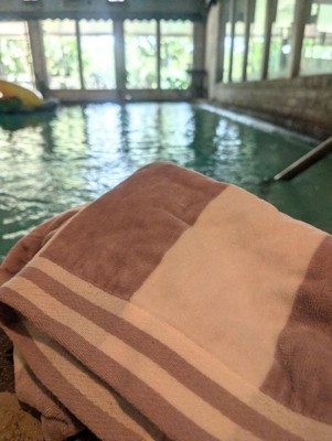 [This review was collected as part of a promotion.] We live in our pool so I'm always on the lookout for towels and this is one! I'm loving my new cabana striped oversized beach towel! It's super soft and absorbent, made of 100% cotton. The size is excellent at 35x70 which is perfect for poolside lounging!