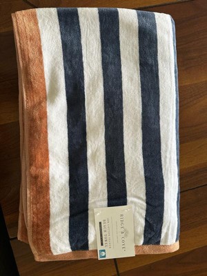 [This review was collected as part of a promotion.] Big oversized beach towel that is both plush and water-absorbent. Great for the day at the beach or at the pool. Cute stripes are on trend but won’t go out of style in a season.