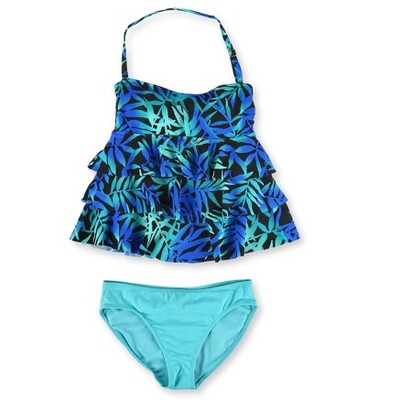 Island Escape Womens Animal Print Ruffle Skirtini 2 Piece Tankini, blueaqua, 6