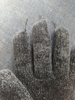 I have only worn these a few times and even w such light use, they are already in terrible shape—threads sticking out everywhere (I’m sure they will have multiple holes soon if I continue to wear them), pieces of chenille fuzz flying all around whenever I move my hands at all. Very disappointed.