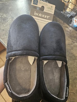 [This review was collected as part of a promotion.] My husband loves wearing these isotoner house shoes. He likes to come home after being in the woods all day and slip these house shoes on. They are super easy to put on and comfortable to wear all evening.